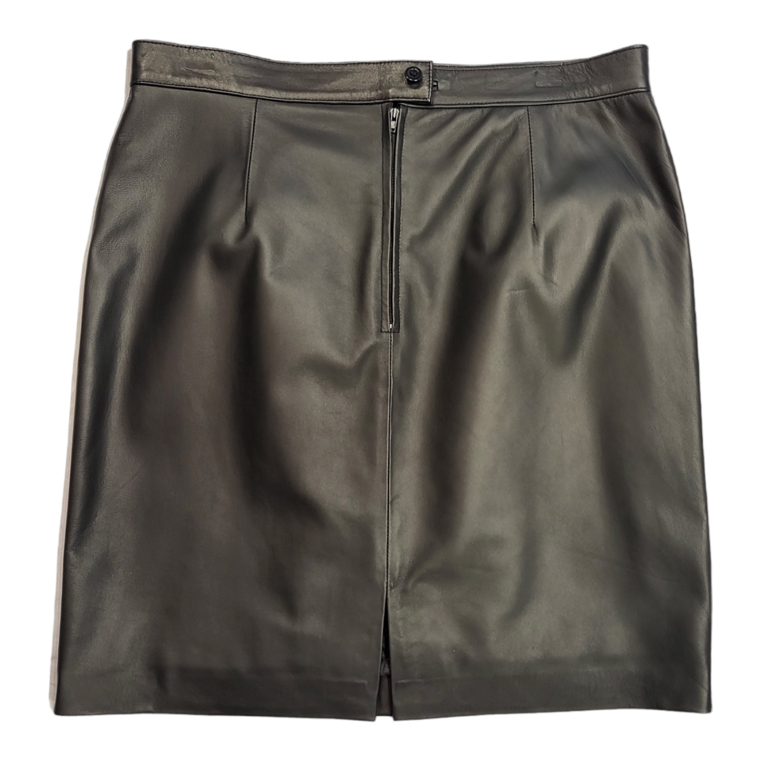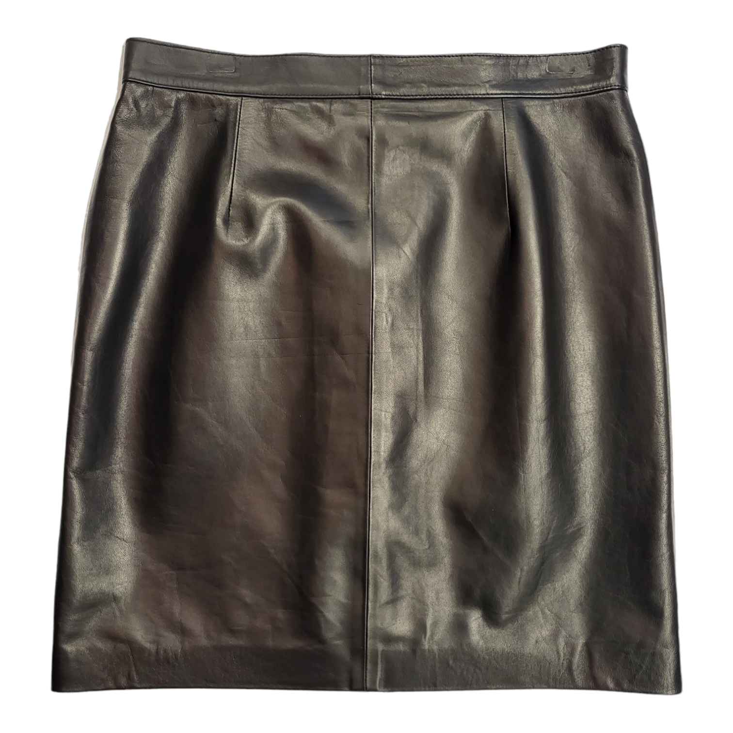 Falda largo medio de piel auténtica, minimalista, color negro . La talla de la foto es 46. Se recomienda escoger una talla superior a la habitual. Varios colores a elegir.