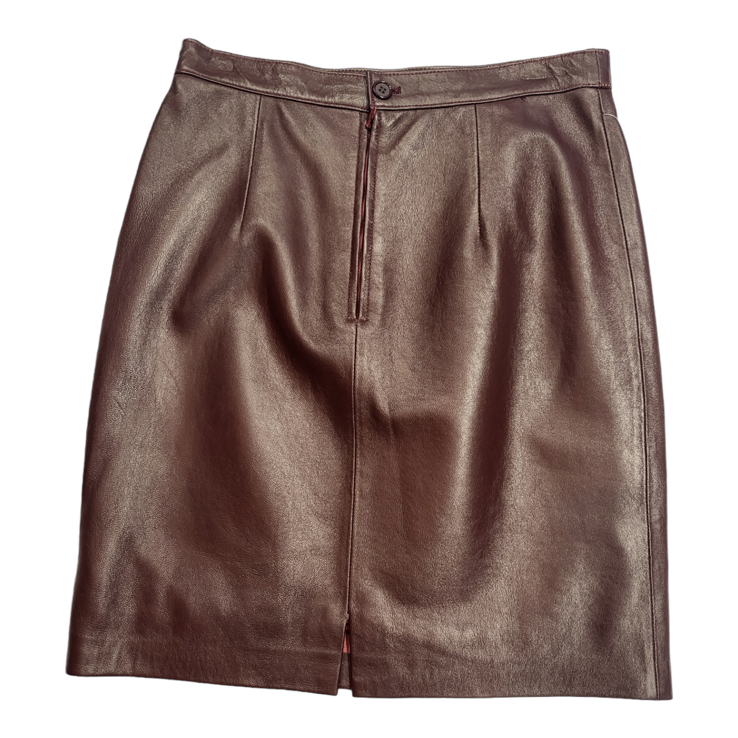 Falda largo medio de piel auténtica, minimalista, color burdeos. La talla de la foto es 46. Se recomienda escoger una talla superior a la habitual. Muchos colores a elegir!!!