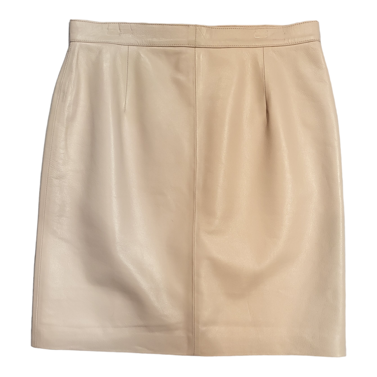 Falda largo medio de piel auténtica, minimalista, color rosa palo. La talla de la foto es 44. Se recomienda escoger una talla superior a la habitual. Varios colores a elegir.
